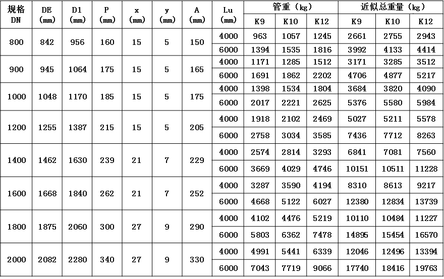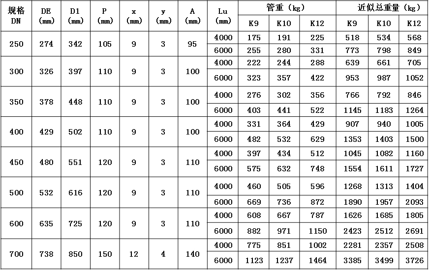 3)鑄管外有PE套或外涂層為聚氨酯時,可以在表中數據的基礎上乘以1.9;如果需要更準確的數據請與我們聯系。